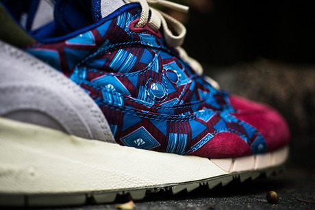 Лимитированный выпуск легендарного бостонского магазина Bodega и одной из старейших марок кроссовок. За основу для этой коллаборации партнеры взяли премиальную линейку Saucony Elite, совместив верх от Shadow 6000 с эргономичной подошвой от предыдущей модели Shadow 5000. Кроссовки выполнены из премиальной замши высшего качества и нейлоновых рипстоп вставок с африканским трайбл принтом. Этот pack продавался исключительно ограниченным тиражом в лучших мировых магазинах.